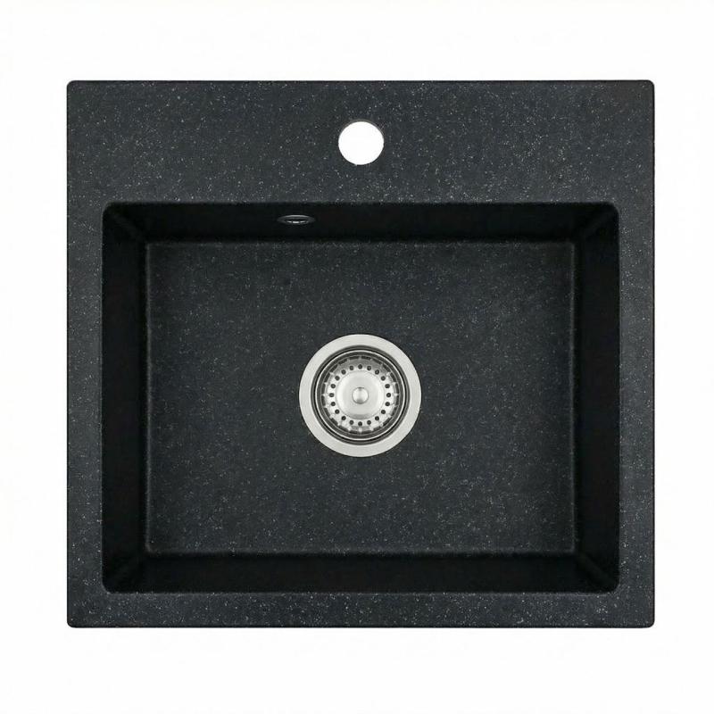 Graniteland Nera Granit Spülbecken 45x42 cm Blau Granit Look Aufbau mit Hahnlochbank und Edelstahl Stöpsel 1208971432