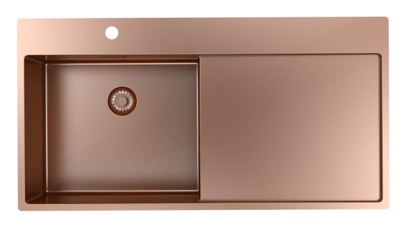 Pure.Sink Exclusivo Kupferne Spüle mit Abtropffläche 100 x 52 cm Wasserhahn links PEX47100LT-62